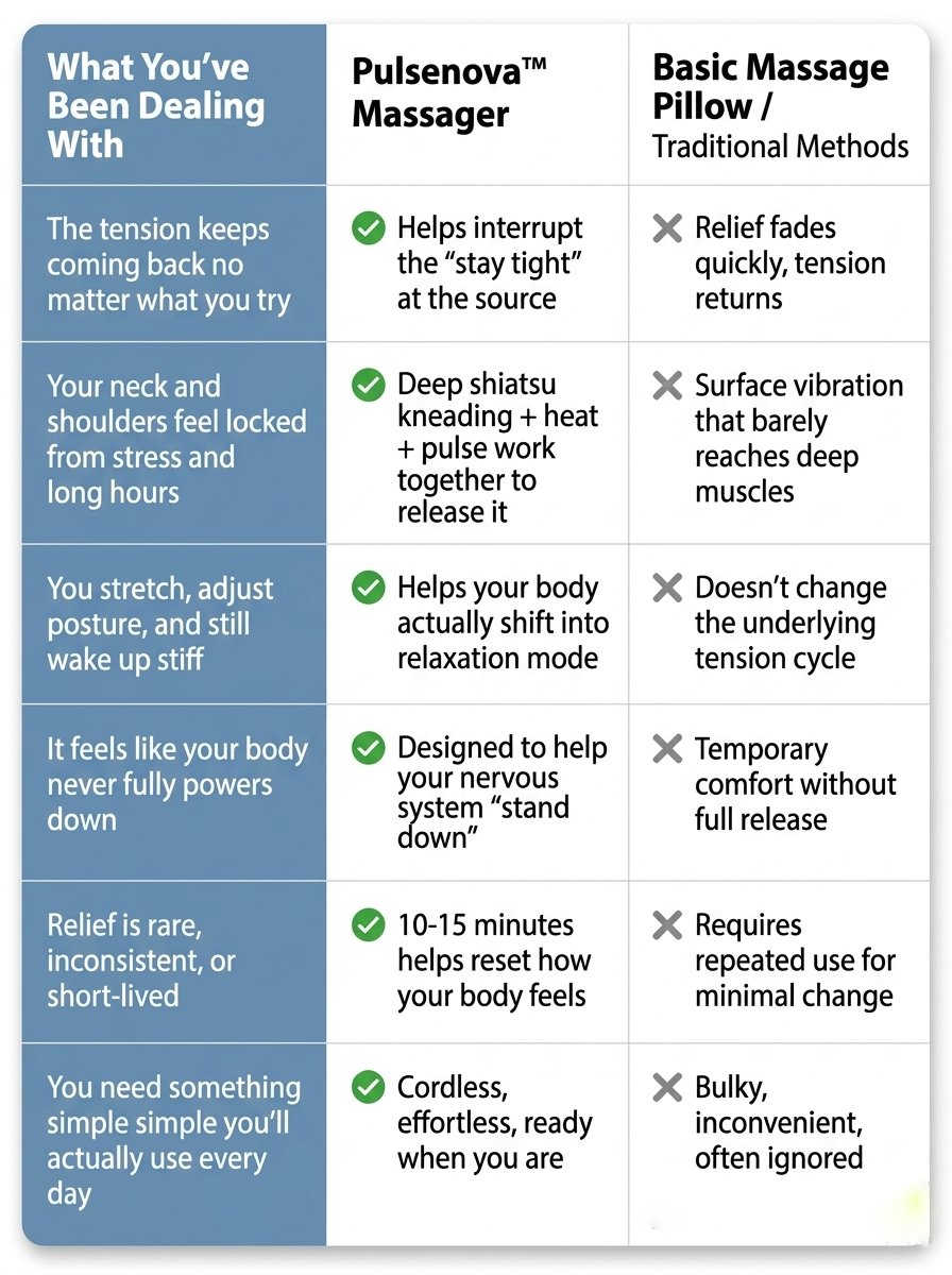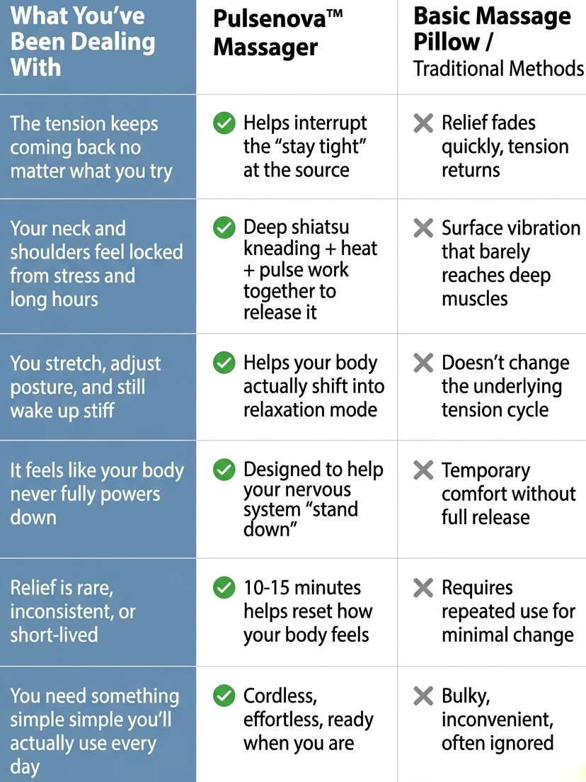 "I’ve tried everything—pain meds, massage guns, even $80–$120 chiropractor visits—but nothing gave me consistent relief like this. It’s the first thing that actually helps me relax my neck and shoulders without feeling like I’m just masking the pain."